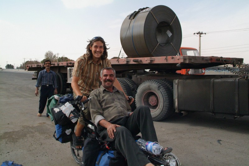 Kaum in Kerman zurück, holen wir unser Gepäck bei dem netten Touristenführer Houssein ab, bei dem wir es lieberweise unterstellen konnten, solang wir in Teheran waren. Danach hält uns nichts mehr in Kerman, so dass wir ein Stück aus der Stadt rausfahren und in zwei Etappen zur Grenze per LKW trampen. Besonders schnell ins Herz schliessen wir den zweiten Lkw-Fahrer Parvis, der gleichaltrig ist und im Konvoi mit einem Kollegen fährt. In der Grenzstadt Zahedan dürfen wir sogar in seiner Schlafkabine auf einem bewachten LKW-Platz schlafen, während er sich die Kabine mit seinem Kollegen teilt. Bei Tagesanbruch geht es auch schon weiter, auch Parvis will nach Pakistan, aber da er noch eine Genehmigung braucht, setzt er uns an einer Polizeistation ab.