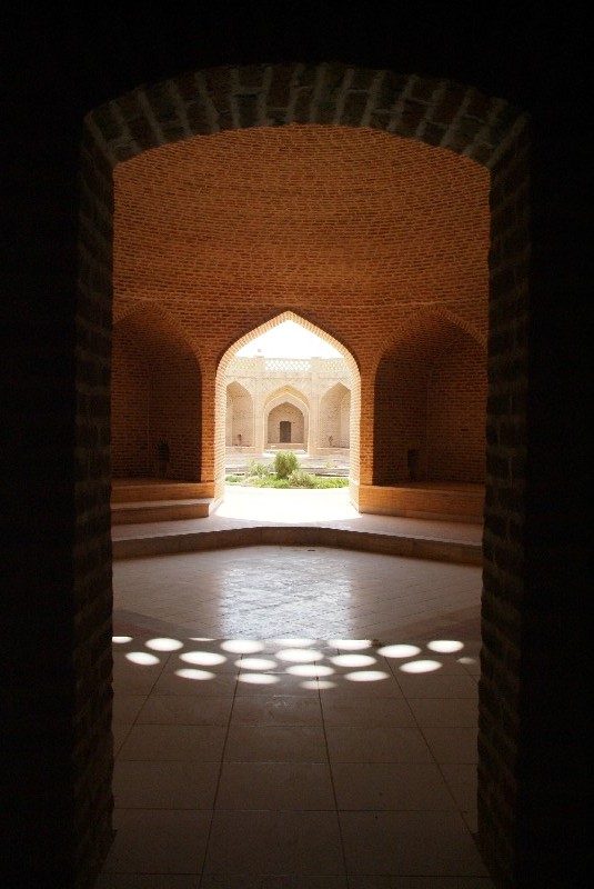 Yazd gehört mit Sicherheit zu den Städten, die leise aber heimlich unser Herz erobert haben. Auch hier sehen wir wieder architektonische Meisterleistungen, aber auch die kleinen verwinkelten Gassen, die labyrinthartig die aus Lehm erbauten Häuser verschachteln, gefallen uns auf Anhieb. Für uns ist Yazd ein schwarzes Loch, da wir hier fast mehr noch als in Esfahan zur Ruhe kommen und sprichwörtlich versacken. 'Schuld' daran ist mit Sicherheit auch das wunderschöne Silkroadhotel, mit seiner lauschigen Atmosphäre, dem leckeren vegetarischen Essen, dem guten aber billigen Schlafplatz auf dem Dach und vor allen Dingen mit den supernetten Besitzern und Angestellten dort! Das Silkroadhotel ist genau wie das Amir Kabil in Esfahan wieder der Travellertreffpunkt und so hocken wir auch hier wieder bis spät in die Nacht bei Tee oder Wasserpfeife zusammen. Grosses Glück haben wir, als wir einen Fotographen aus Kerman, Iran kennenlernen, der uns einen Abend und den nächsten Morgen schöne versteckte Ecken der Stadt zeigt und uns zum Beispiel mit auf die Dächer des Basars nimmt. Ausserdem machen wir noch einen schoenen Ausflug mit dem Südkoreaner Doyan und dem Japaner Sato in die verlassene Lehmstadt Charanag, und erklimmen dort das schaukelnde Minarett, bevor wir im Anschluss noch Chak Chak, eine heilige Stätte der Zarathustrianer (die Religion der Iraner, bevor der Islam Einzug hielt) besuchen.