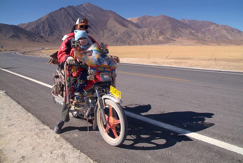 Nach eingem Handeln sind wir uns mit dem Wirt auch über den Übernachtungspreis einig geworden. Leider funktioniert der Ofen jedoch nicht. Am frühen Abend kommen noch andere Gäste zum Schlafen in die kleine Baracke und wir sind erstaunt: ein reicher japanischer Tourist lässt sich von tibetischem Personal verwöhnen - insgesamt zwei Köche, zwei Fahrer und ein Touristenführer sorgen für sein leibliches und seelisches Wohl. Wenn er zum Pippi machen rausgeht, wird ihm die Jacke umgehängt, er lässt sich in seinem Sessel am Ofen bedienen wie ein König und er wird in der Nacht, als er schläft vom Touristenfüher zugedeckt. Drei Wochen hat er Zeit um von Lhasa nach Kashgar zu reisen. Während er im Jeep vorneweg kutschiert wird, transportiert ein LKW alles Zubehör. Wow, eine Reise in dieser Form erleben wir das erste Mal, aber mit seinem Luxus möchten wir nicht tauschen. Der Touristenführer spricht zwar japanisch und er hat sogar ein Satellitentelefon, doch ob er allein immer so viel Spass hat? Auch wenn wir uns manchmal quälen müssen, so überwiegt meist die Freude am Radfahren, an den Begegnungen, an den ungeplanten Überraschungen.