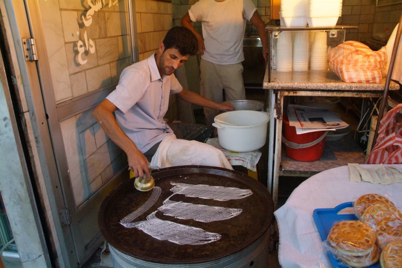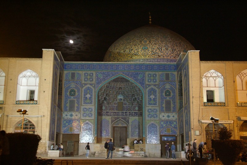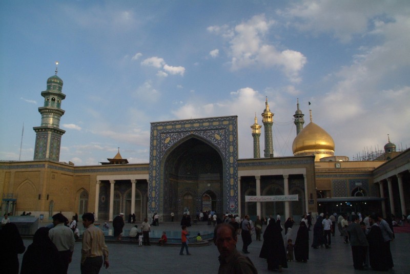 Am nächsten Morgen werden wir vom Klopfen der Arbeiter wach und sind erst sehr spät auf dem Rad. Bald sind wir auf der Autobahn, auf der es sich wesentlich ruhiger fahren lässt als auf der Landstraße, da dort keine LKW fahren dürfen. Die Landschaft ist relativ karg und wüstenartig, nur wenige kleine Sträucher wachsen noch am Boden. Auch zum Übernachten zieht es uns in die Halbwüste, wo wir ohne Zelt unter dem wunderbar klaren Sternenhimmel schlafen, der nur dadurch gestört wird, dass fast Vollmond ist. Auch anderntags fahren wir weiter durch die Halbwüste an einem Salzsee vorbei. An diesem Mittag können wir der Hitze entgehen, da wie eine Oase in der Wüste eine Tankstelle mit Laden und klimatisiertem Restaurant auftaucht, an der wir uns erst mal ausgiebig erholen und mit Fast Food unsere Mägen füllen. Nachmittags rollen wir weiter in Richtung Qom, neben Maschad eines der beiden religiösen Zentren des Iran. In Qom steht nämlich die berühmte Grabmoschee (um 1600) mit dem Schrein von Fateme-ye Ma'sume, der Schwester des 8. Imam Ali ar-Rida. (Im Islam gibt es 12 heilige Imame, 11 davon zu Zeiten Mohammeds, und der 12. wird noch erwartet).