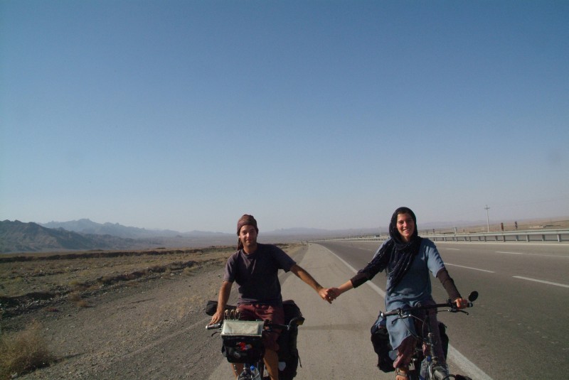 Den Tag darauf flicken wir unseren ersten Platten und als endlich alles auf den Raedern ist, stellt auch Laura bei sich einen Platten fest. Nachdem alles repariert ist, gibt es erst einmal ein grosses ausfuehrliches Fruestueck, welches uns den Park in solch einem gemuetlichen Licht erscheinen laesst, so dass wir spontan noch einen Tag bleiben, faul in der Sonne liegen und uns eine Dusche basteln. Frisch gestaerkt und gut ausgeruht klingelt schon am naechsten Tag gegen 6 Uhr der Wecker, da wir in zwei Tagen im schoenen Isfahan sein wollen und zudem unsere Reisepaesse in Teheran mit den hoffentlich auf 30 Tage verlaengerten Visa abgeholt werden wollen. Es ist gut frueh auf dem Rad zu sein, da die wuestenartige Gegend sich tagsueber schnell erwaermt und wir von Kashan aus ein gutes Stueck bergauf fahren. Nur noch wenige Doerfer liegen auf der Strecke und wir benutzen das erste Mal zusaetzlich unseren 10 Liter Wassersack, um ueber den Tag zu kommen.